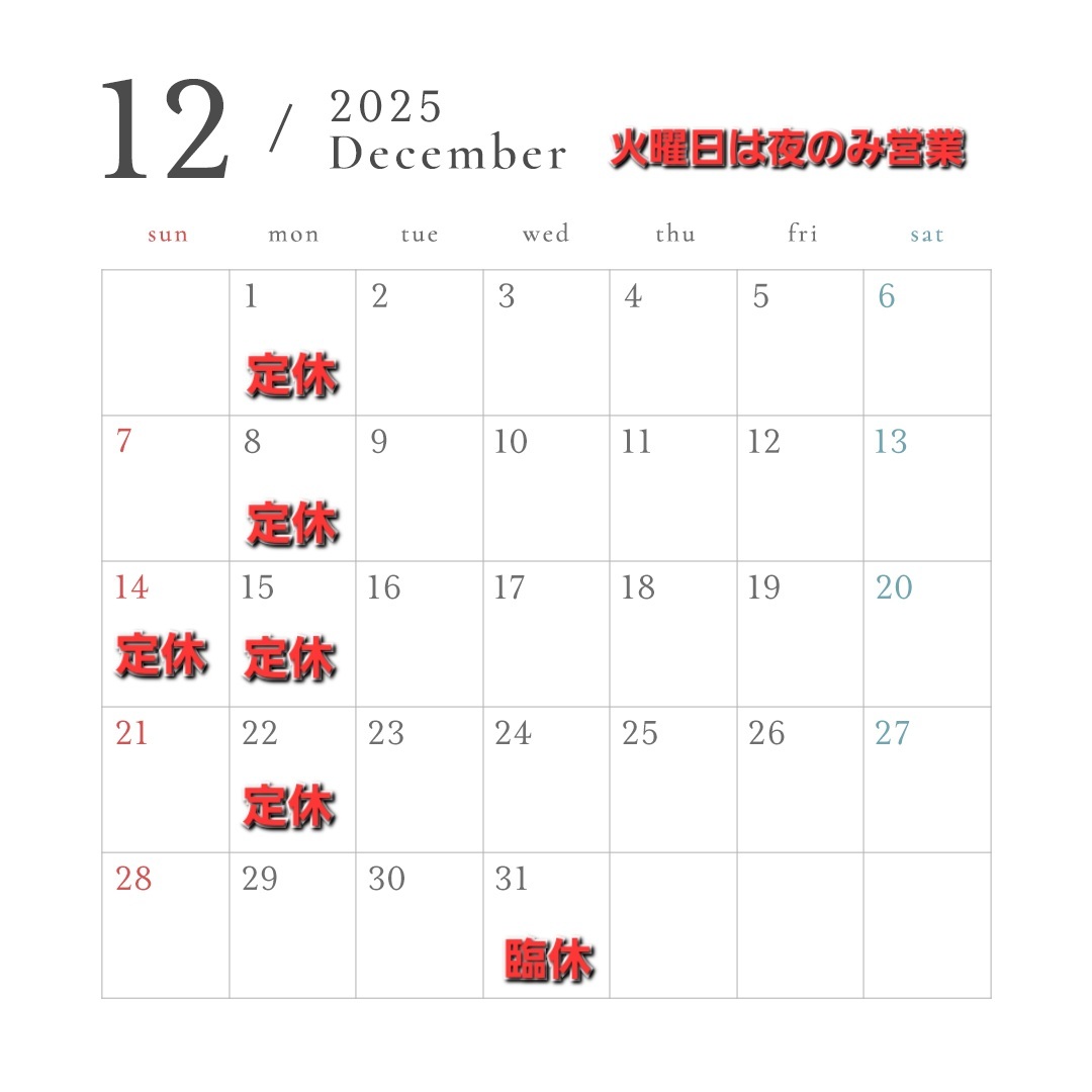 月曜日、火曜日は夜のみ営業、第二日曜日