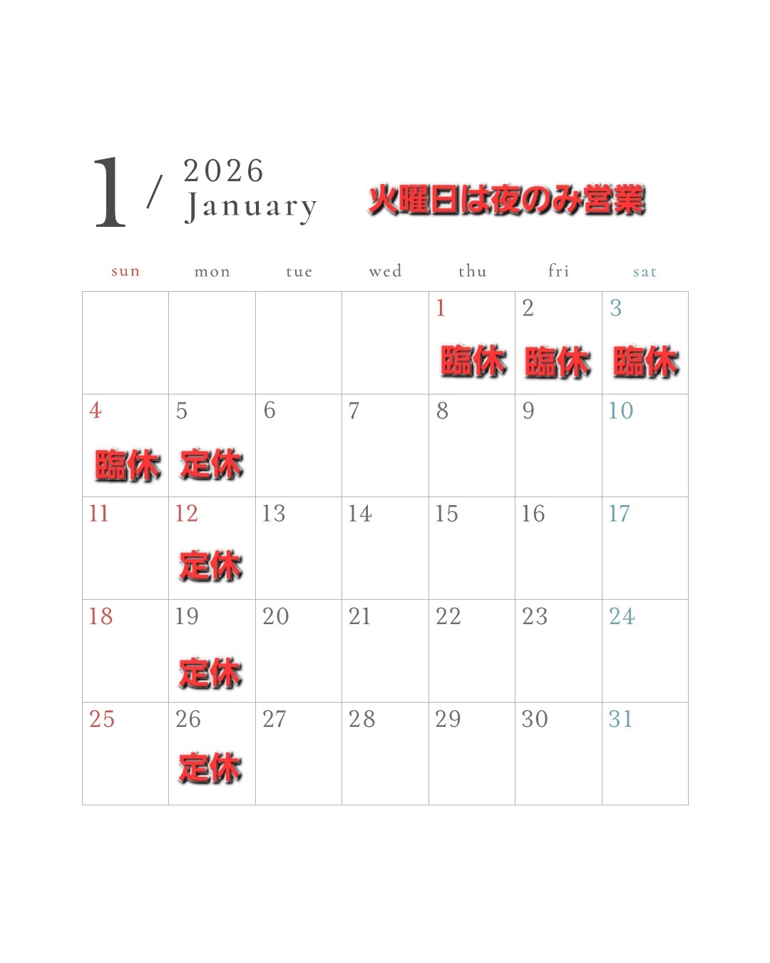 ※臨時休業もあります。